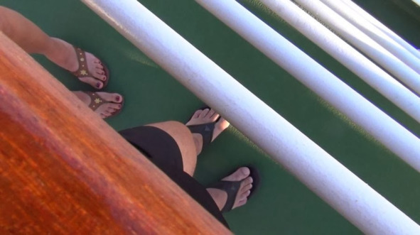 Она продолжалась недолго. Все облегченно вздохнули, когда дали «Отбой»! И разошлись по своим делам. До отплытия оставалось каких-то полчаса. Мы пошли бродить по верхним палубам, фиксируя, что же творится на них и в близлежащих окрестностях?