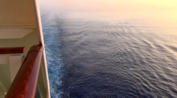Солнце садится за горизонт. Такой длинный, насыщенный тревогами и впечатлениями день подходит к концу. Мы заходим в каюту, садимся на балконе. Корпус корабля плавно потряхивает, точно так, как в Европе в поездах дальнего следования. На море штиль. На душе и радостно и тревожно: как всё пройдет? Как сложится это пока самое дальнее в нашей жизни путешествие?