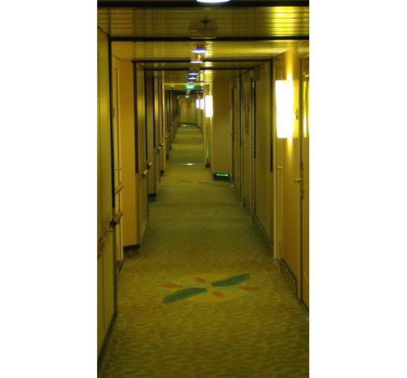Ну что же, наш лайнер уже идет по морю-окияну, Испания скрылась в вечерней мгле, поэтому пора бы еще немного побродить внутри Liberty of the Seas. Выходим из каюты вот через этот длинный коридор.