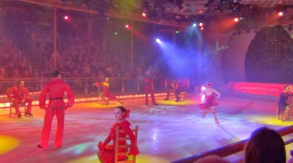 Удивляло, с какой скоростью катаются фигуристы на таком небольшом пятачке льда. Конечно, они не являются мастерами высшего класса, бывшими чемпионами мира и Олимпийских игр. Но уровень примерно мастеров международного класса. Исполняют прыжки в два с половиной оборота. Пару раз при этом упали. Но тут же быстро вставали и с улыбкой, словно ничего не произошло, продолжали выступления. Тесный контакт с публикой. В один момент фигурист подъехал к трибуне, чтобы зрительница поцеловала его в щеку. И вообще, первый ряд был на расстоянии вытянутой руки от выступавших.