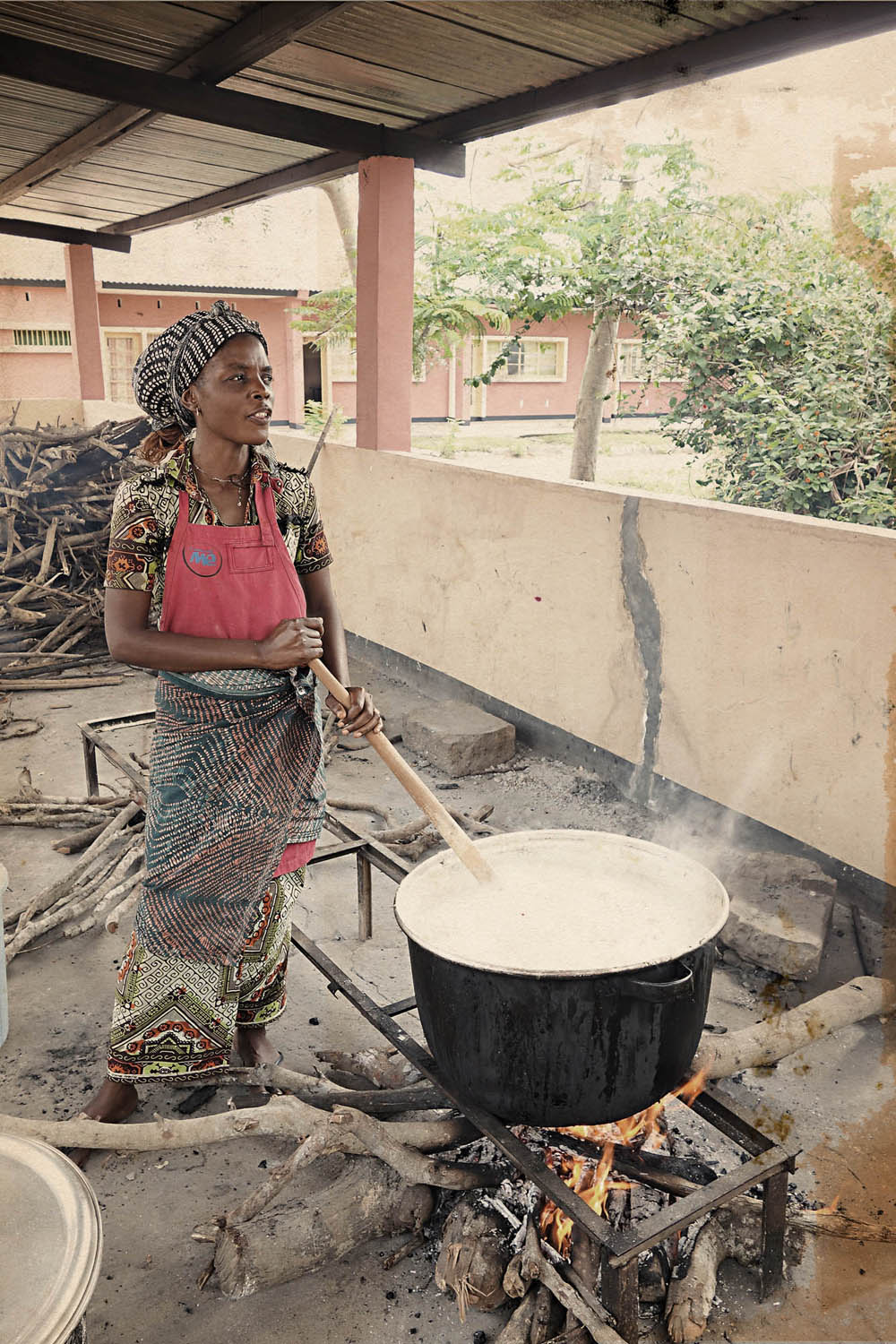 Und so wird die Verpflegung an der Unteroffiziersschule von Kitona in Kesseln über offenem Feuer zubereitet, wie schon zu den Zeiten, ehe die ersten portugiesischen Schiffe in die Kongomündung eingelaufen sind.