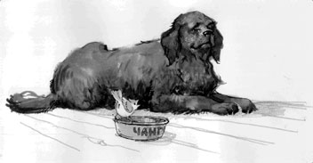 Рыжик огляделся по сторонам и опасности нигде не увидел. Он вспорхнул, завис над целью, как маленький вертолёт, и опустился на край необъятной миски. При этом он не спускал с собаки глаз, ежесекундно ожидая подвоха. Но Чанга была флегматичной и терпеливой, как все водолазы, – она и ухом не повела.