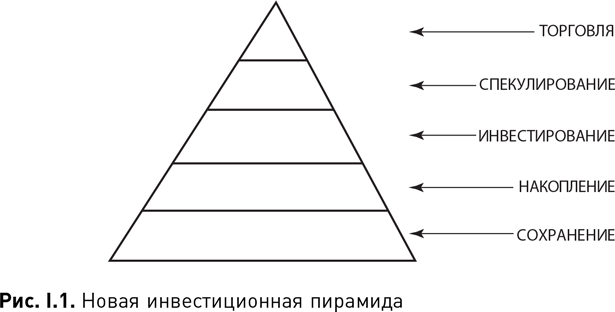 Поскольку в глобальной экономике XXI в. угрожающие события происходят очень часто, то стратегия «покупай и держи» может оборачиваться разочарованиями и убытками вне зависимости от инвестиционного инструмента. Тщательно выращенная прибыль может испариться после очередного информационного сообщения, обвала рынка или кризиса. Традиционная инвестиционная пирамида выстраивается из таких видов деятельности, как сохранение, накопление, инвестирование и спекулирование, которые обычно осуществляются посредством конкретных инвестиционных инструментов – денег и золота, облигаций и сбережений, акций и фьючерсов. В сегодняшней среде торговля становится самостоятельным видом деятельности для проницательного инвестора, умеющего ухватить прибыль, прежде чем она исчезнет. Торговля валютами, пожалуй, почти идеально подходит для нашего времени.