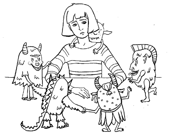 Повскакивали кухонные монстры друг на друга, сделали пирамиду и клешнями да щупальцами с ложноножками кое-как побороли старые прищепки. Упал стиралошный в копытца да в лапки к кухонным монстрам: «Спасибо, спасибо!» – говорит.