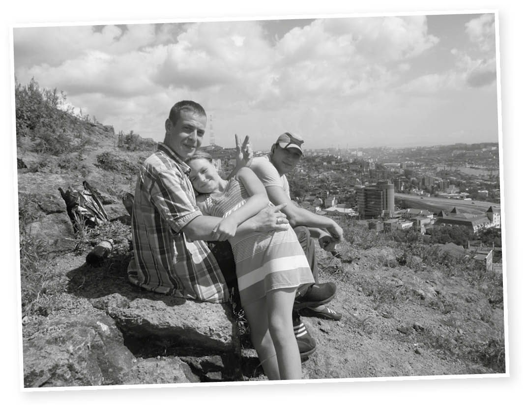 Am Nachmittag läuft auf dem Festival ein weißrussischer Film, der im Programm unter der Rubrik »Russland« gelistet ist. Ich kaufe mir eine Karte dafür und sehe im Programmaushang, dass in den nächsten Tagen auch Pierre Richard kommen wird. Dann spaziere ich durch die Stadt Richtung Adlernest, einer Aussichtsplattform, angeblich der höchste Berg in Wladiwostok. Da ich noch nirgendwo einen Stadtplan entdecken konnte, orientiere ich mich grob an den Hügeln. Die grünen Hügel – sopki – sind oder besser gesagt waren eines der Wahrzeichen der Stadt. Leider sieht man sie kaum noch, weil alles mehr und mehr zugebaut wird. Das Adlernest ist besonders schön gelegen, weil man von dort sowohl auf das Goldene Horn als auch auf die Amur-Meeresenge schauen kann. Hinweisschilder zu diesem touristischen Highlight gibt es jedoch nicht. Ich frage mich durch, schlängle mich durch Gärten und über abgelegene Treppen immer bergauf. Irgendwann bin ich auf einem grünen, mit Wiese bewachsenen Berg mit herrlicher Aussicht.