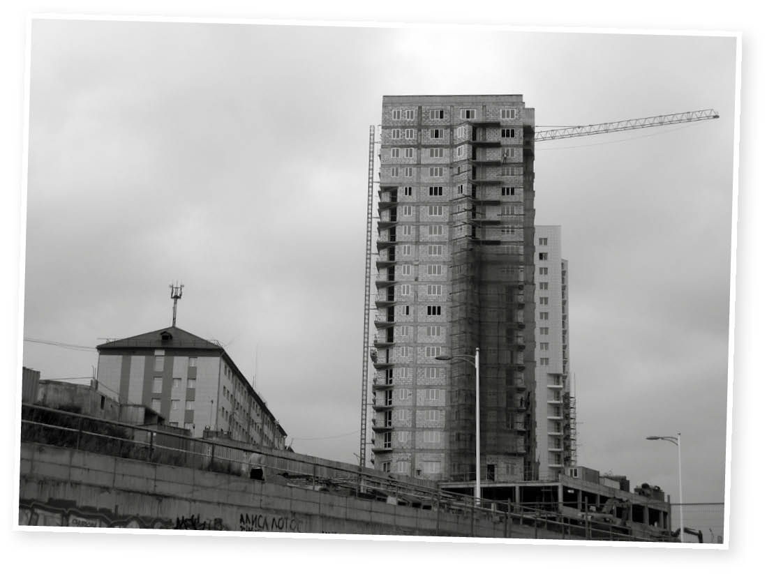 Dann ist die Promenade zu Ende, ich steige nur noch über Flaschen und Müll. Irgendwann zischt eine Ratte vorbei. Ich lande auf abseitigen Wegen, muss immer wieder irgendwelche Baustellen umrunden, es wird dunkel. Dann sehe ich den Block, in dem ich wohnen werde. Direkt am Meer, so hatte ich mir das vorgestellt und so sahen auch die Fotos aus. Aber was ist das denn? Was sehe ich da? Unmittelbar vor dem sechsstöckigen Haus befindet sich eine Baustelle. Ein Hochhaus wird dort hochgezogen, keine hundert Meter vor dem Haus, direkt auf dem Strand. Ich hoffe inständig, dass mein Zimmer nicht genau hinter dem Rohbau des Zwanziggeschossers liegt.
