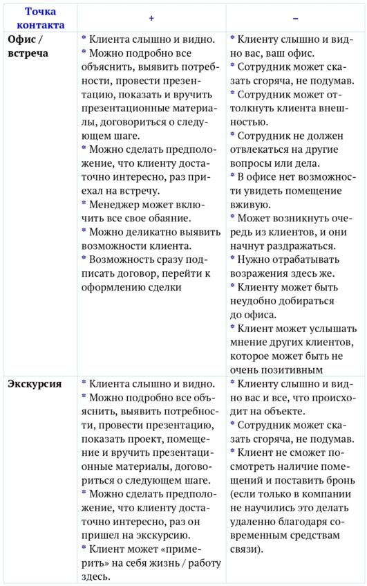 На рисунке 2 изображен наиболее длинный путь клиента. Конечно, он может быть короче. Некоторые точки контакта, например визит в офис или экскурсия, могут отсутствовать в работе с тем или иным клиентом. Кстати, в большинстве случаев сокращение пути происходит благодаря именно менеджеру отдела продаж, частично специалисту кол-центра.