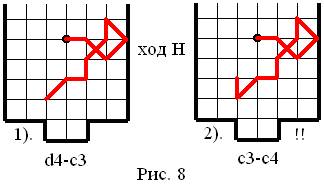 На рисунке 6 приведена конструкция из реальной партии. Из этой конструкции первый ход сделал Верхний игрок (В). Он сходил: d4-c3. Смысл этого хода заключался в провокации! Дело в том, что Верхний игрок (В) знал, что Нижний игрок (Н) повторяется, что он зациклен на защитном ходе «ПТИЦА» – рисунок 7: