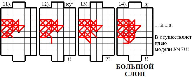 Далее Нижний игрок (Н) вынужден будет занять d4, после чего Верхний игрок (В) реализует идею модели № 17 – БОЛЬШОЙ СЛОН!