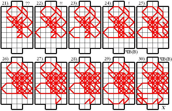 На 14 ходу Нижний игрок (Н) начал делать отступления, но Верхний игрок (В) грамотно обработал опорную конструкцию и в результате создал Нижним воротам (Н) безвыходное положение (ходы: 23-29).
