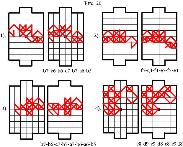 Полное перекрытие прохода к твоим воротам можно осуществить с помощью перекрытия хода. На рисунке 20 представлены примеры таких перекрытий (во всех примерах ходят Верхние ворота (В):