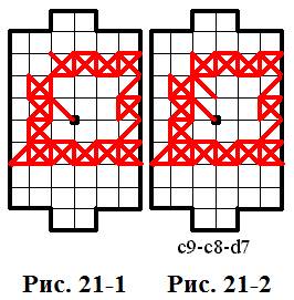 Сейчас ходят Верхние ворота (В). Их ход показан на рисунке 21-2. Из рисунка 21-2 видно, что Верхние ворота (В) загнали Нижние (Н) в западню – они перекрыли ход и в итоге займут последнее пустое пересечение, а Нижние ворота (Н) попадут в тупик.