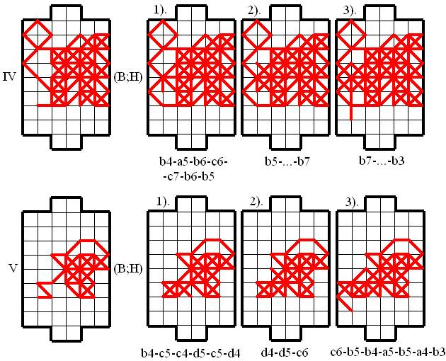 В примерах III, IV с помощью перекрытия хода Верхний игрок (В) не только защищается, но и создаёт Нижнему игроку (Н) безвыходное положение – проход к Верхним воротам (В) полностью перекрывается.