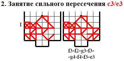 1). f3-e2-e3 (или f3-…-e2-e3; а если ход был сделан из пересечения e3, то тогда: e3-…-e2-f3. Т.е. основная идея данного хода – не дать забить гол через пересечение e2).