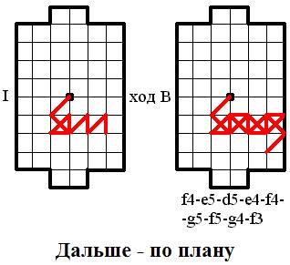 3). f5-f4 (отвратительный ход – Верхним воротам (В) следовало бы занять пересечение f6 и в итоге они бы без проблем «дожали» Нижние (Н), осуществив идею модели № 1 – ПРОСТОЙ ЗАЖИМ)
