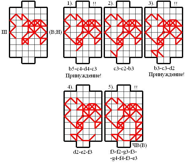 3).1. f5-f4 (или f5(f4)-…-f4(f5)) – Нижние ворота (Н) в безвыходном положении