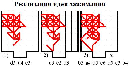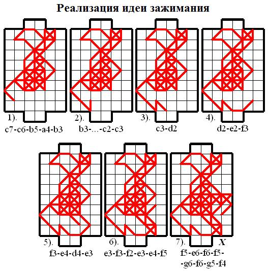 Примеры осуществления идеи зажимания Верхним игроком (В) (создана достаточная опора; Верхний игрок (В) ходит и выигрывает):