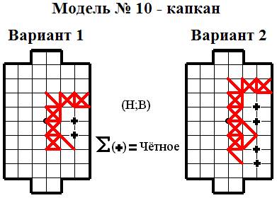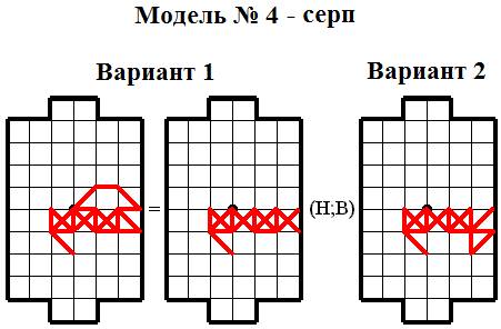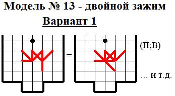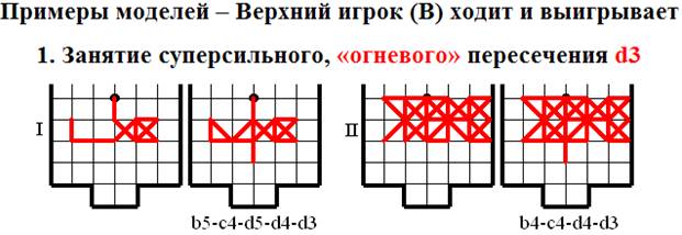 Все модели – это конструкции, которые создал Верхний игрок (В). Верхний игрок (В) создал безвыходное положение сопернику – Нижний игрок (Н) ходит и проигрывает. Во всех моделях первый ход делает Нижний игрок (Н).