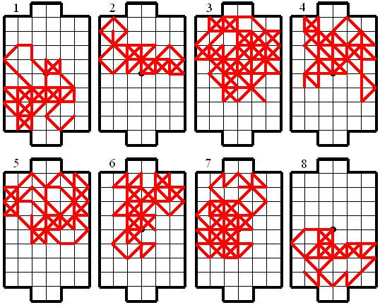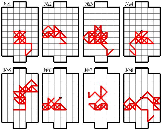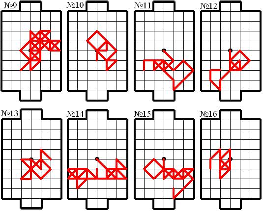 Во всех задачах первый ход делают Верхние ворота (В). Суть задач: реализуя какой-либо тактический приём, то есть, совершая оптимальный ход или последовательность ходов, Верхний игрок (В) занимает выгодное положение в поле или создаёт безвыходное положение противнику – Нижнему игроку (Н).