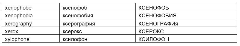 Вот полная таблица возможных подмен для английской буквы «X»: