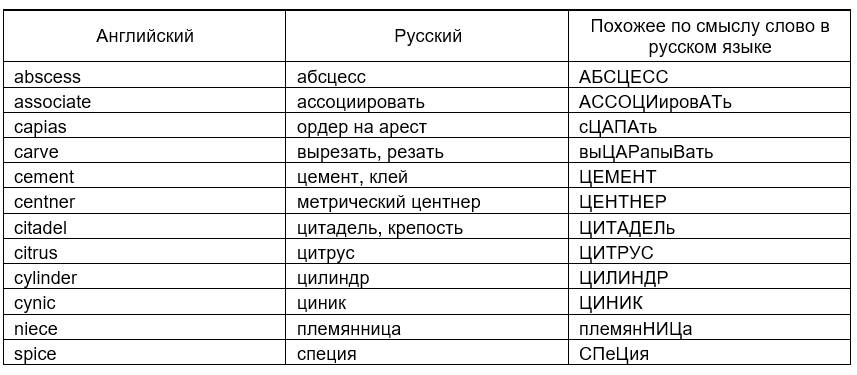 «Если мы не видим смысла в английском слове сразу, но в нём есть буква «C», то следует перебрать подмены К-C, С-C, Ц-C, З-C в порядке убывания».