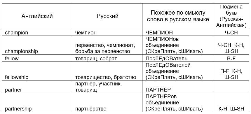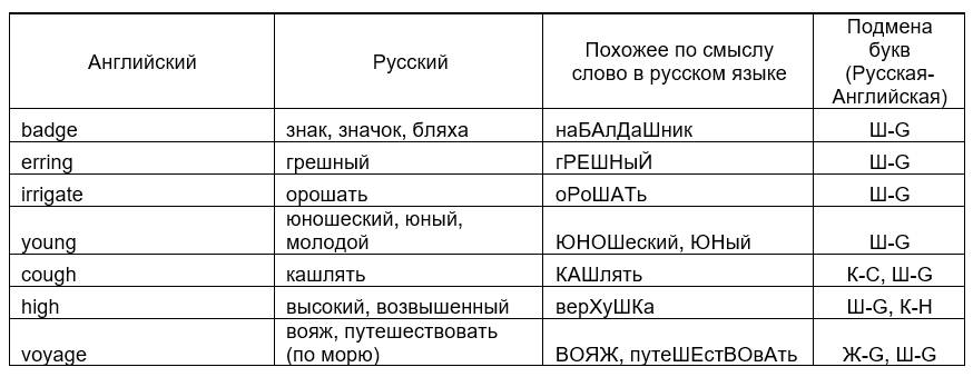 В начале, глядя на английское слово и его официальный перевод на русский язык, лучше попробовать самостоятельно угадать, используя таблицу, похожее по смыслу значение в русском языке. И только если это не получится, то тогда уже заглядывать в 20 000 словарь. Такой подход будет стимулировать ваш мозг, и вы значительно легче сможете запоминать как слова, так и подмены, которые свойственны той или иной букве. Превратите этот процесс в игру! Так станет намного интереснее! И значительно более продуктивно! Записывайте ваши собственные варианты перевода! Вполне вероятно, что они даже будут намного правильнее моих! Присылайте мне их на почту