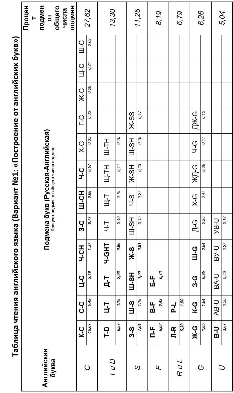 Так что же англичане потеряли? Для ответа на этот вопрос рассмотрим теперь по отдельности каждую букву (сочетание букв) и её подмену.