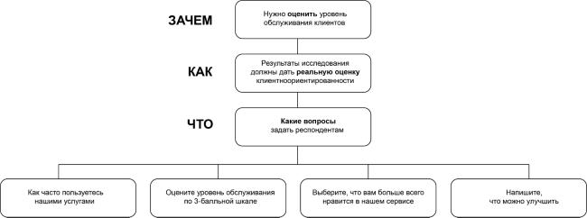 Уровень зачем – это понимание цели маркетинговых исследований или проблем бизнеса, которые необходимо решить с помощью итогов исследования.