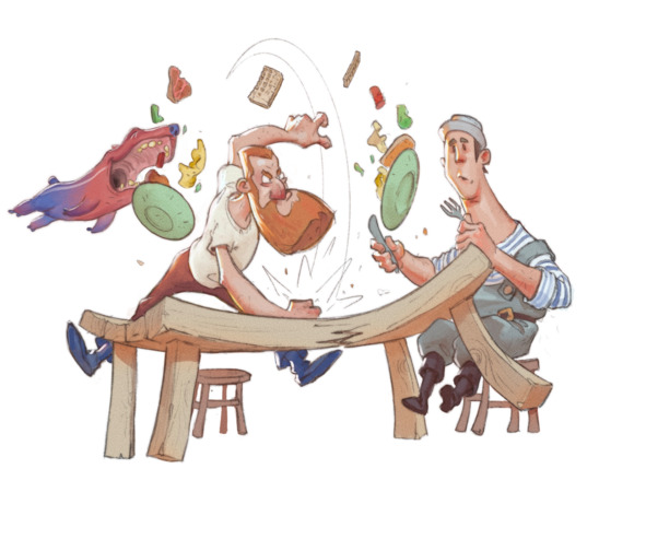 Камбала не успел договорить, потому что капитан Гриффель шарахнул кулаком по столешнице с такой силой, что её дощечки заскрипели, а из щелей вылетела пыль. Вся посуда, стоявшая на столе, подпрыгнула вверх. Вафли и яичница совершили пируэт и тут же исчезли в пасти взвившегося в воздух Ластика.