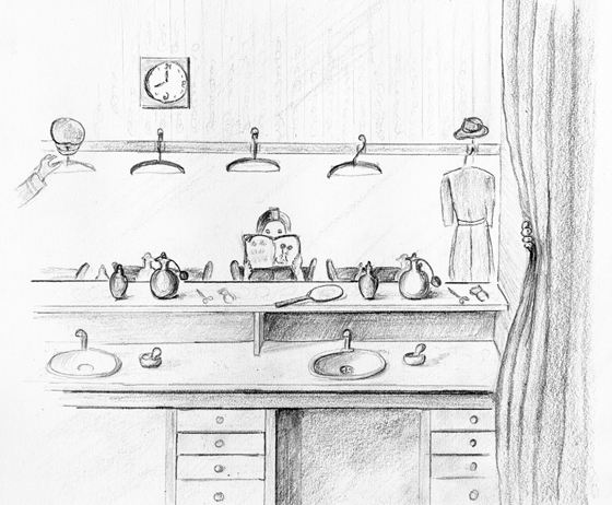 Nearing the shop, I could smell a delightful aroma of eau de cologne floating over the sidewalk. Opposite the entrance a big curtain separated the salon from the service room. It was a little place with a table piled up with towels; one chair was in front of it and a stool was underneath it. Between the last steps of a winding staircase going up to the apartment and a door leading out to the inner courtyard, there was just enough room for three people. Every Thursday was children’s haircut day, the day the two Adolphes chose to meet. I got my haircut at the same time. It was easier for Adolphe to leave his employee to tend the shop by himself on that day. Children seldom asked for the owner himself. That was not the case with his most select clients: doctors, judges, managers, and so on. Many asked to be groomed by the gentlemanly owner who had such a charming personality.