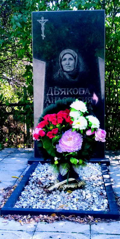 В апреле 1942 года под Ростовом-на-Дону пулемётчик Фёдор Дьякóв получил тяжёлое проникающее ранение лёгкого. Его успели довезти до госпиталя в Прохладном – это бывшая казачья станица в 60 километрах от Благовещенского. Все эти километры успела пройти и его жена Анастасия – муж умер у неё на руках. В мае 1942 года Фёдора похоронили на кладбище в Благовещенском, а вскоре село заняли немцы и выгнали вдову с мальчиками на улицу. Анастасия Андреевна, потеряв всё, к октябрю 1942 года решила пробираться в родные места, вернуться в Марьинскую – всё же дома можно было опереться на поддержку родных. Всего 36 лет было молодой вдове и замуж она, как и тысячи казачек с такой же горькой долей, более не вышла. Но горе не согнуло эту гибкую, обаятельную женщину и не заперло её душу на замок. Она всеми силами старалась казаться сильной, независимой, временами была даже до заносчивости гордой и весёлой. А по ночам, ранимая по натуре, плакала в подушку – и слышали её плач только сыновья. Младший, Анатолий, навсегда запомнил какую-то особенную пронзительность облика матери, но в то же время её постоянную стойкость и главное желание – поднять сыновей.