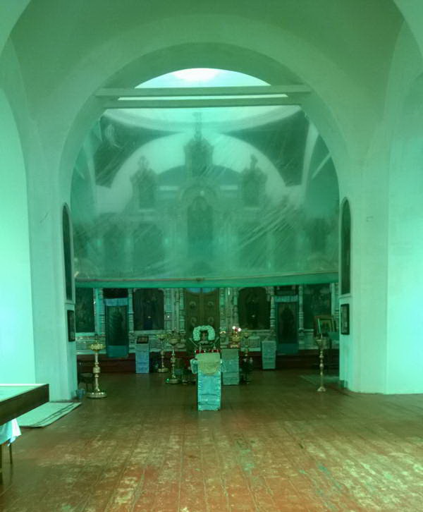 Самой нарядной из трёх похожих храмов в неовизантийском стиле является сохранившаяся практически в первозданном виде церковь Святой Живоначальной Троицы. В советское время она была закрыта, в ней было организовано зернохранилище. Это её спасло. Зерно насыпали практически до самого верха, поэтому детали архитектурного убранства, уникальный фаянсовый иконостас, один из трёх в России, были укрыты им и уцелели до тех пор, пока в 1990-е годы в храме вновь не начались службы. Что-то селяне сохранили в своих домах и вернули при реставрации храма. На деталях иконостаса видны сохранившаяся розовая глазурь и даже автографы мастеров из Екатеринбурга конца XIX века.