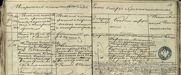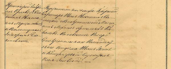 поручители по женихе: губернский секретарь Иван Никитин Самецкий и ставропольский мещанин Михаил Артемьев Кавалев; по невесте: писарь Ставропольского интендантского отдела Иван Ясин и канцелярский служитель Илья Яновский