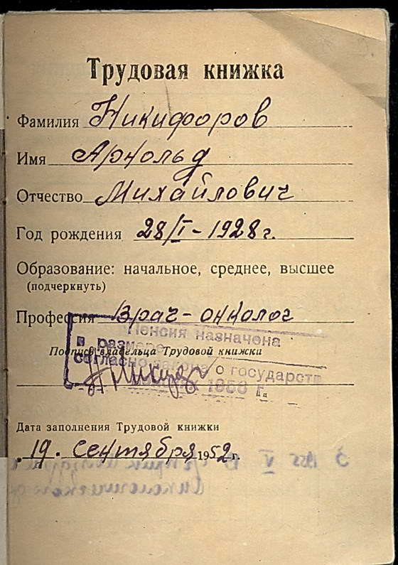 326 – личное дело студента А. М. Никифорова. Хабаровский медицинский институт. Архив