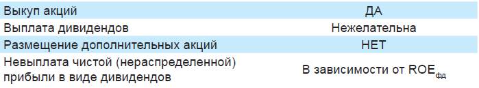 Еще раз отметим, что компании необходимо четко понимать свой относительно стабильный уровень доходности (ROEф), который она сможет получать на собственный капитал.