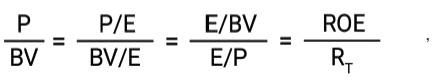 Мы уже упоминали о том, что инвестору покупать акцию по цене P (рыночный курс) дороже балансовой стоимости BV (размер собственного капитала на акцию) имеет смысл только в случае, когда темп роста BV (выплачиваемые дивиденды также являются элементом роста собственного капитала на акцию) превышает возможное увеличение уплаченной цены Р с темпом долговой процентной ставки (например, ставки по депозиту). Иначе говоря, необходимо выполнение условия ROE > Rт, где ROE – рентабельность собственного капитала приобретаемого бизнеса, а Rт – требуемая доходность от вложений в данный бизнес (не ниже уровня долговой ставки).
