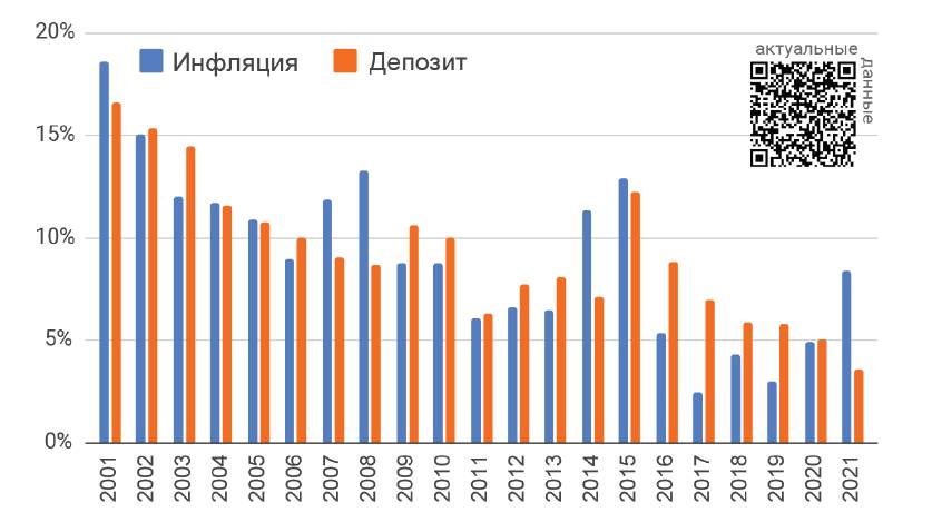 • Ставка по депозиту, скорее всего, будет близка к уровню инфляции в долгосрочной перспективе.