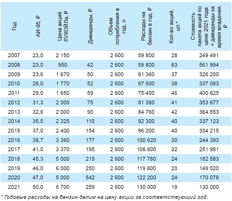Ответ: чтобы не расстраиваться из-за ежегодного роста цен на бензин, надо купить акций на сумму ваших годовых трат. Если же компания, акции которой вы купили, наращивает объем деятельности в натуральных величинах, то темпы вашего обогащения будут еще выше.