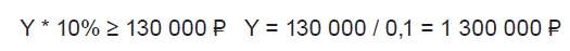 Вернемся к нашему примеру. Часто эту задачу путают со случаем, когда необходимо выяснить: какой пакет акций ЛУКОЙЛа необходим, чтобы курсовой рост их стоимости мог покрыть все ваши расходы на бензин. Давайте теперь допустим, что цена на бензин вообще не растет, а соотношение стоимости акции и прибыли (коэффициент Р/Е) у ЛУКОЙЛа остается на уровне 10. Это означает, что доходность ЛУКОЙЛа как бизнеса составляет 10% в год. Тогда уравнение выглядит следующим образом: