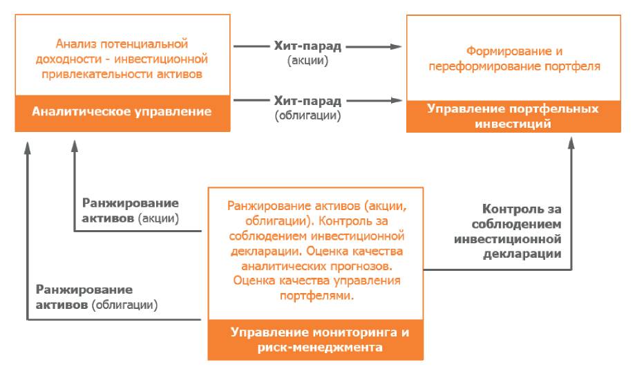 За (1) и (2) отвечает Управление мониторинга и риск-менеджмента, за (3) – Аналитическое управление, за (4) – Управление портфельных инвестиций.