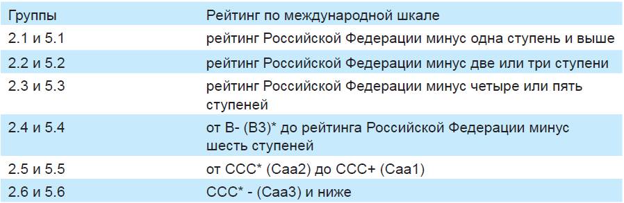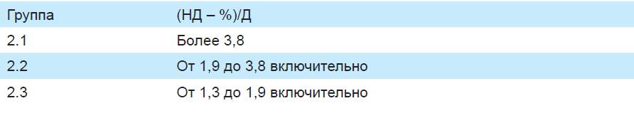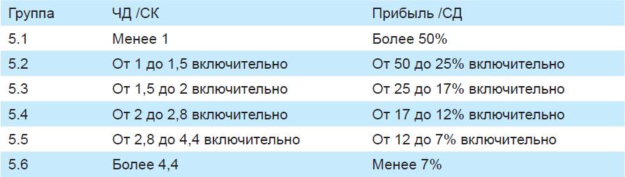 Отнесение облигационного выпуска к конкретной группе по оценке кредитоспособности эмитента (поручителя, оферента) на основании рассчитанных по отчетности значений финансовых коэффициентов производится по худшему из двух показателей на основании следующей таблицы.
