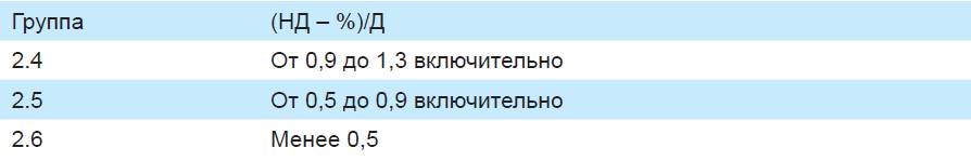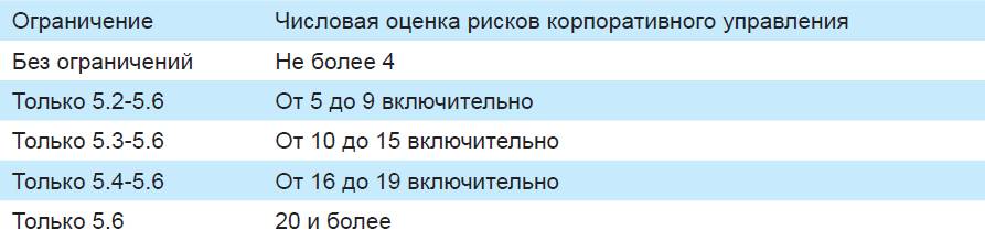 Отнесение акций к группе риска происходит по худшему из критериев согласно следующей таблице.