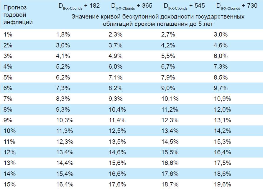В заключение приведем таблицу ограничений на максимальную средневзвешенную дюрацию в зависимости от номинальной доходности и прогноза инфляции.