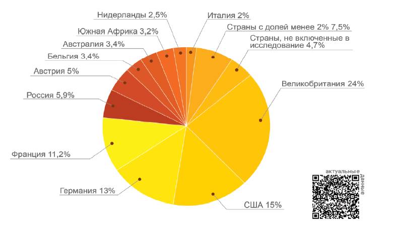Исследование охватывает страны, которые занимают почти 90% капитализации рынка акций (по итогам 2021 года).