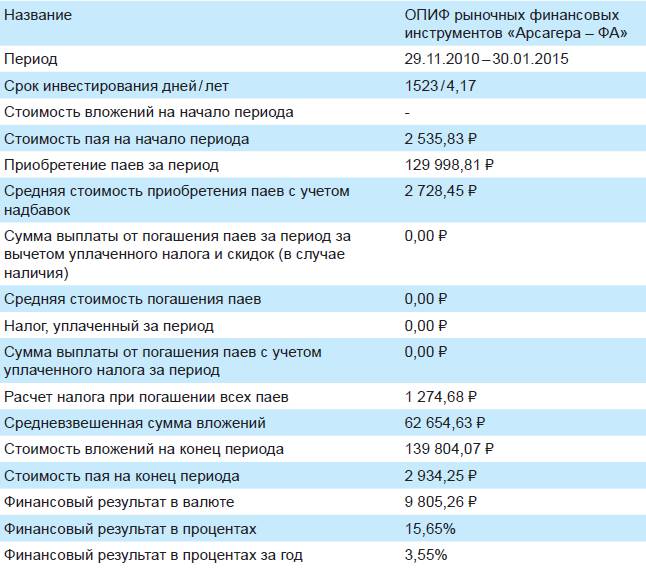 Действительно промежуточный результат Марии за 4 года, с начала 2011 г. по начало 2015 г. не впечатлял: вложено 130 тыс. ₽, накопленный пакет паев – 47,65 шт., стоимость вложений на начало 2015 года – 140 тыс. ₽.