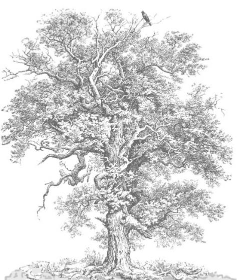 Большинство дубов вокруг были большие и очень большие, но Батюшка был огромным. Да и стоял повыше. На самой верхней его ветке, вознесённая под небеса, сидела крупная чёрная птица.
