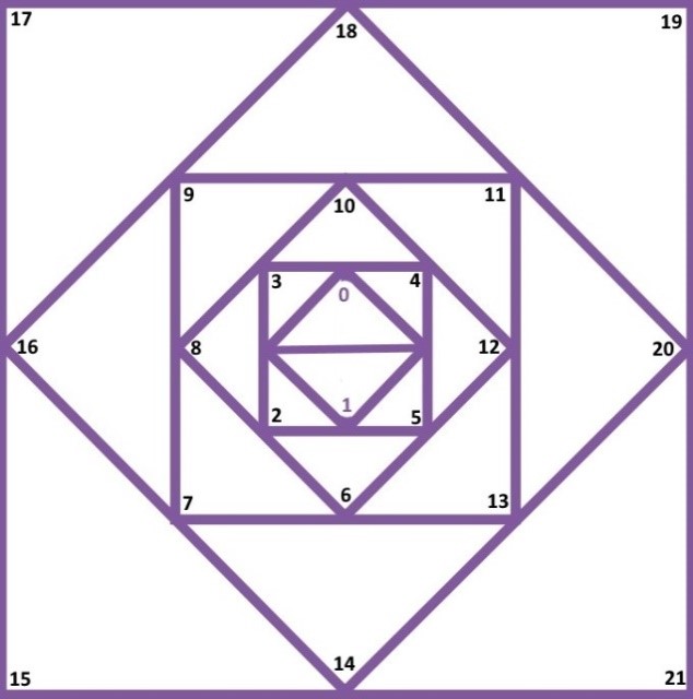 Спираль Судьбы представляет собой сложную и многогранную систему, в основе которой лежат шесть квадратов, вписанных друг в друга и разделённых на сегменты в форме треугольников. Эти сегменты, которых всего насчитывается 22, мы условно называем «Домами», заимствуя термин из астрологии. Каждый из этих Домов имеет своё уникальное значение и ассоциируется с одним из Старших Арканов Таро, что придаёт им особую символическую глубину.