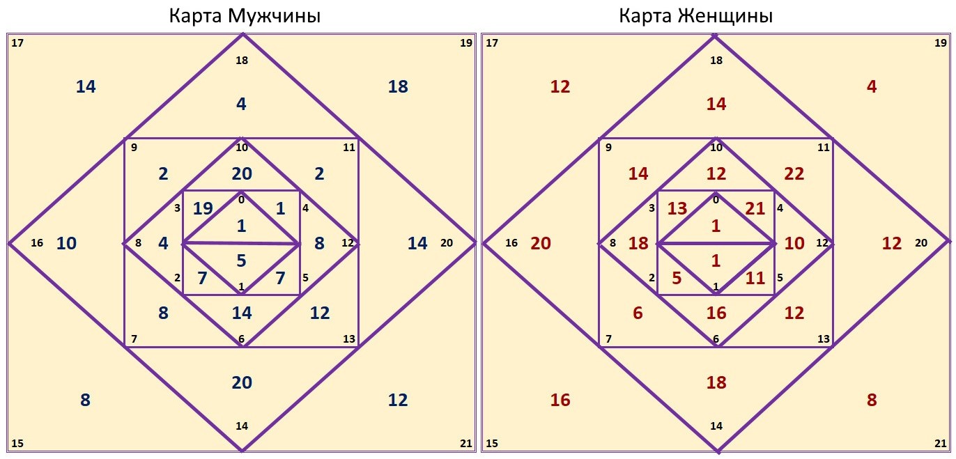 Вносим полученные результаты во внутренние Дома Карты, согласно формул в Главе 2. Часть 3.