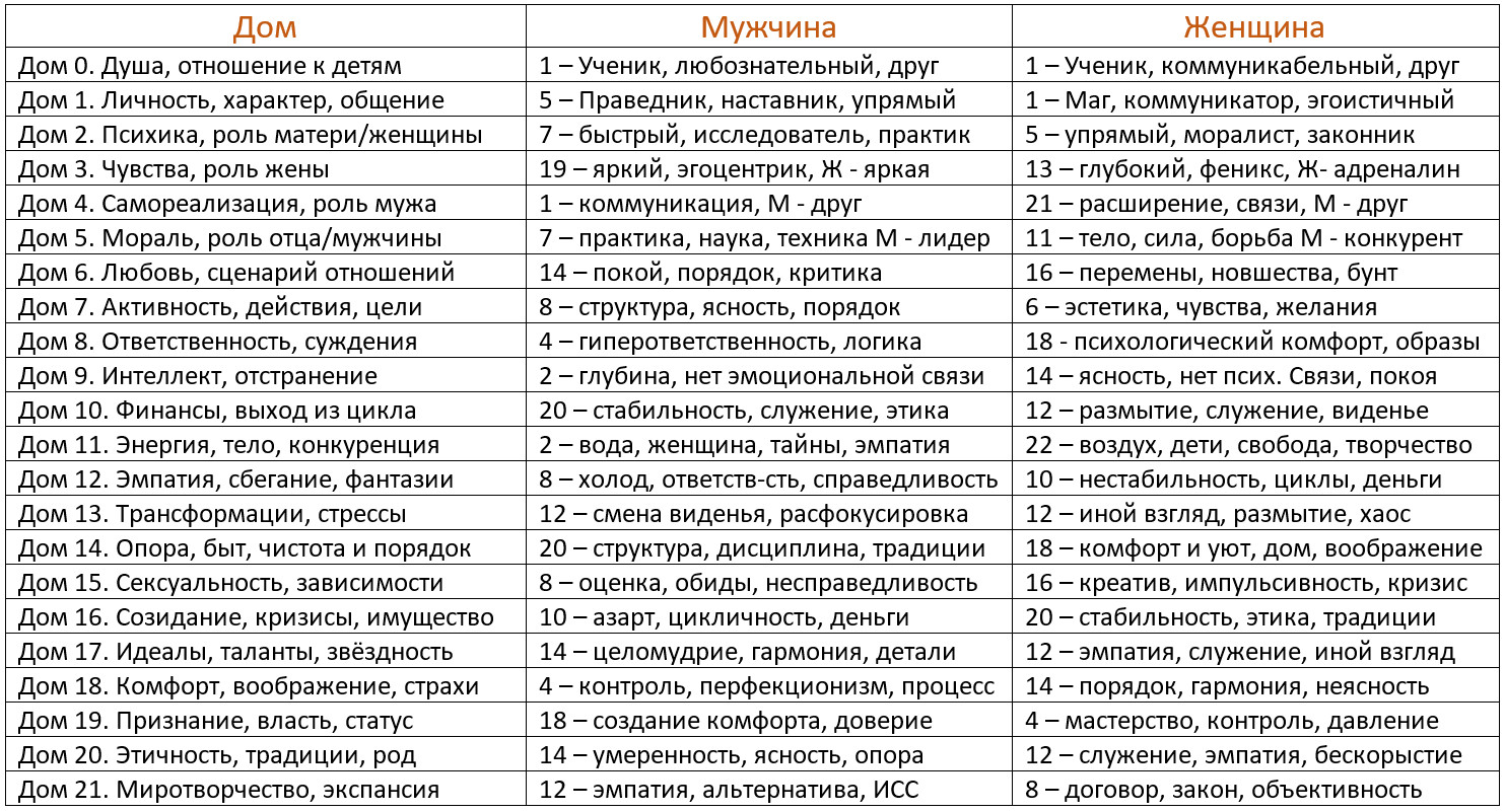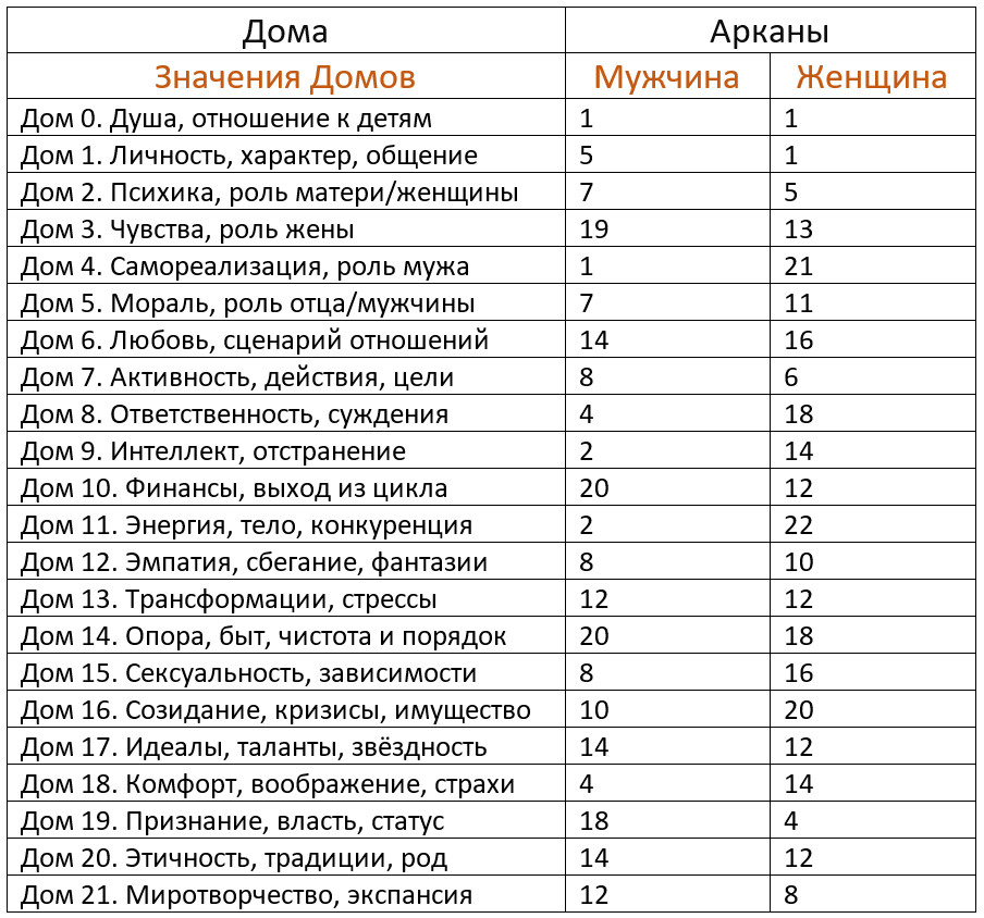 В 0 Дом вносим Арканы из Нулевых Домов Карт мужчины и женщины. В данном случае это 1 и 1.