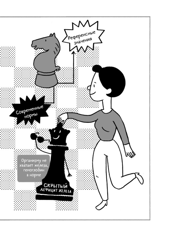 С дефицитом железа не так. Вы же помните, почему мы назвали его черной королевой нашей шахматной партии? Как королева может перемещаться по доске практически в любом направлении и рубить фигуры в самых неожиданных местах, так дефицит железа может ударить по нервам, иммунитету, физической выносливости, красоте. Или даже замаскироваться под совершенно другую болезнь.